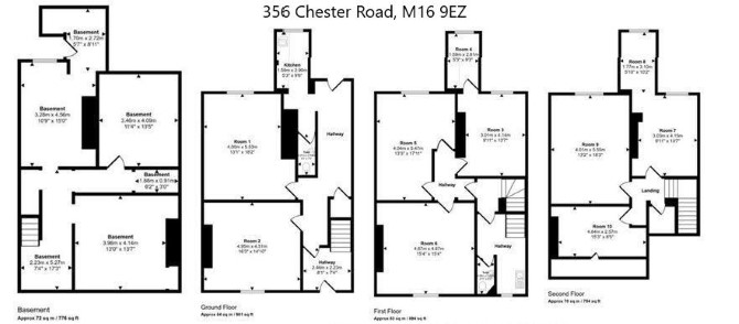 356 Chester Road Basement Three Rooms Ground Floor Two Office Rooms Kitchen WC First Floor Three Office Rooms Kitchen WC Storage Room Second Floor Four Office Rooms 358 Chester Road Basement Three Rooms Ground Floor Kitchen WC Two Rooms First Floor Two Rooms Large Bathroom Second Floor Three Rooms (One with En Suite)