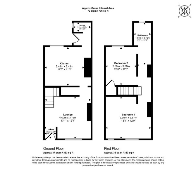 Ground Floor Reception Room Kitchen First Floor Two Bedrooms Bathroom