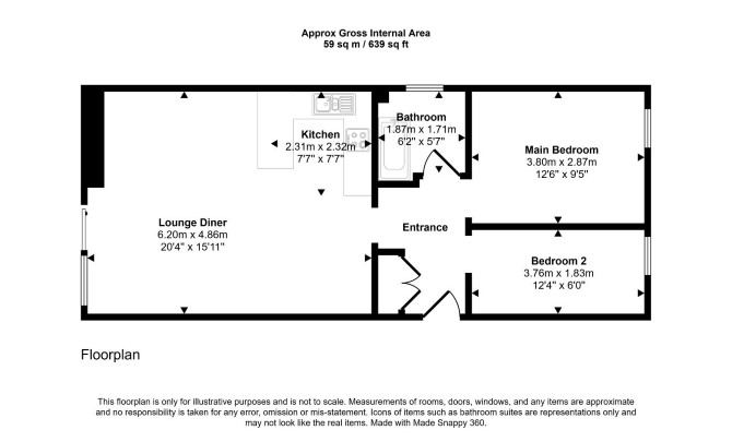 First Floor Reception Room with Open-Plan Kitchen Two Bedrooms Bathroom