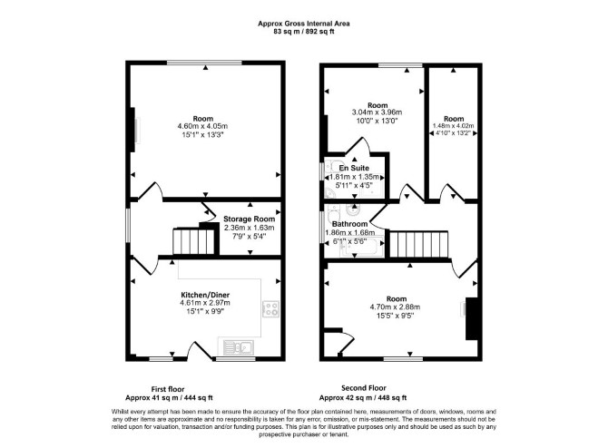 First Floor Kitchen/Diner Room Second Floor Three Rooms (One with En-Suite) Bathroom