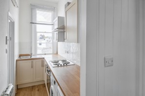 The property comprises a second floor studio flat situated within a purpose built building arranged over lower ground, raised ground and two upper floors.