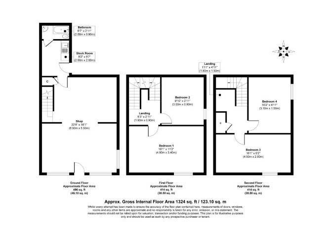 Ground Floor Shop Area Kitchen WC First Floor Two Rooms Second Floor Two Rooms