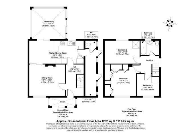 Ground Floor Reception Room Kitchen/Diner Conservatory WC First Floor Three Bedrooms Bathroom