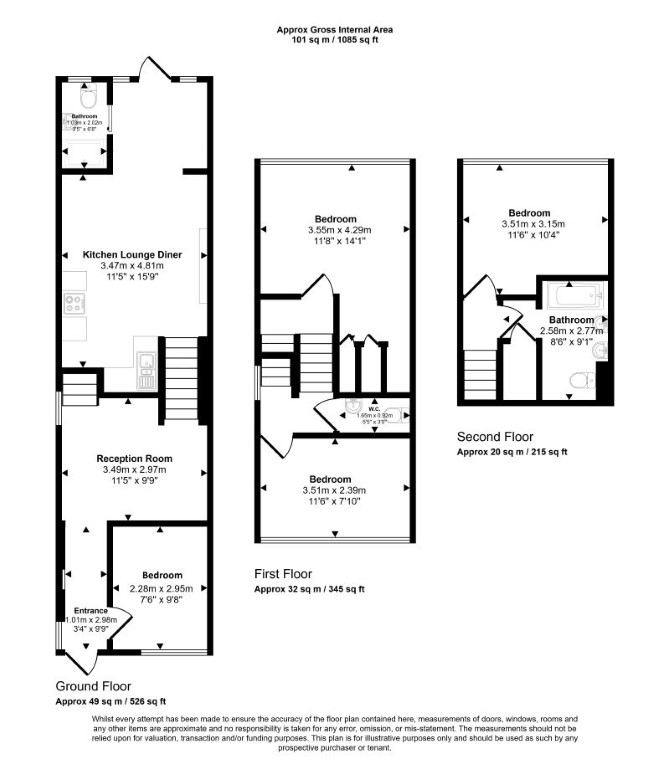Ground Floor Reception Room Kitchen/Diner Bedroom Bathroom First Floor Two Bedrooms Bathroom Second Floor Bedroom Bathroom