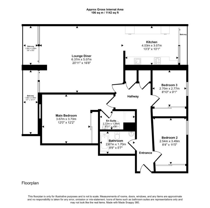 Second Floor Reception Room Kitchen Three Bedrooms (One with En-Suite) Bathroom GIA Approx: 102 sq m (1157 sq ft)