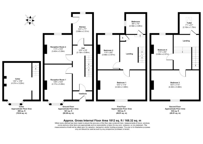 Lower Ground Floor Cellar Ground Floor Reception Room Kitchen Dining Room First Floor Two Bedrooms Bathroom Second Floor Two Bedroom W/C