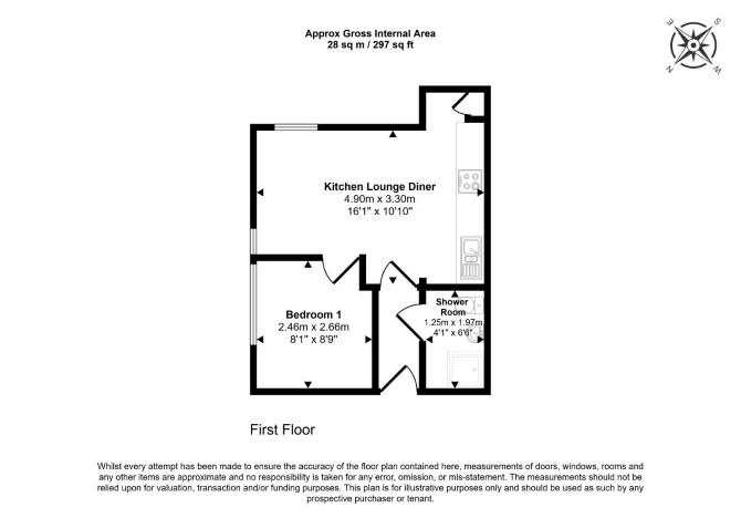 First Floor Reception Room with Open-Plan Kitchen Bedroom Bathroom