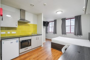 The property comprises a ground floor studio flat situated within a purpose built block arranged over ground and three upper floors.