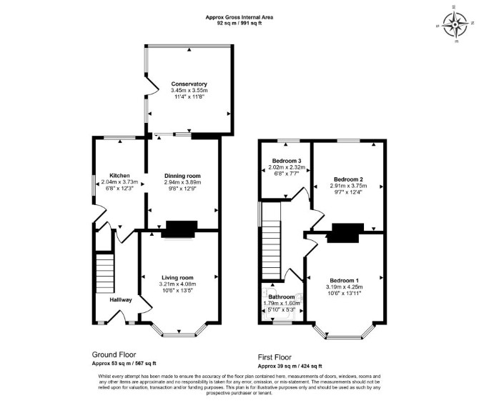 Ground Floor Three Reception Rooms Kitchen First Floor Three Bedrooms Bathroom