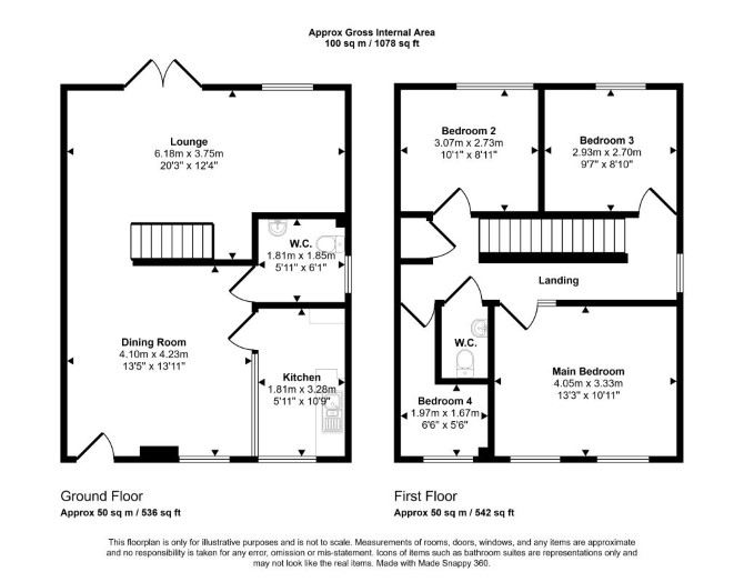 Ground Floor Through Reception Room Kitchen WC First Floor Four Rooms WC