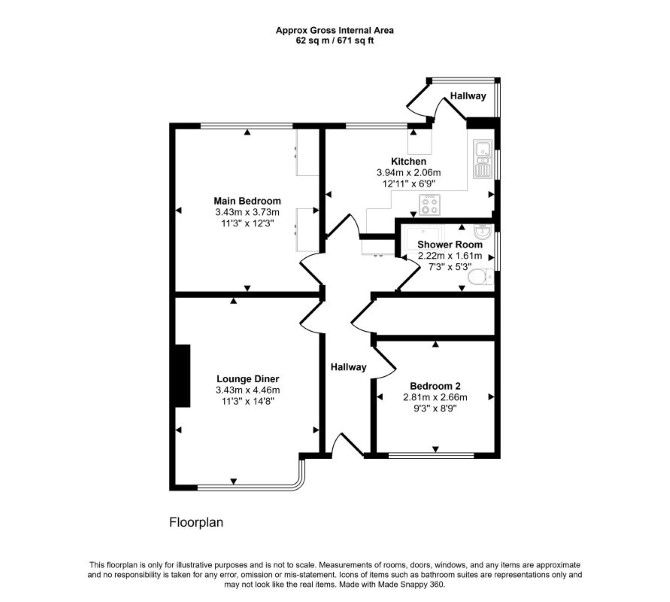 The property comprises a ground floor two bedroom flat arranged over ground and first floors.