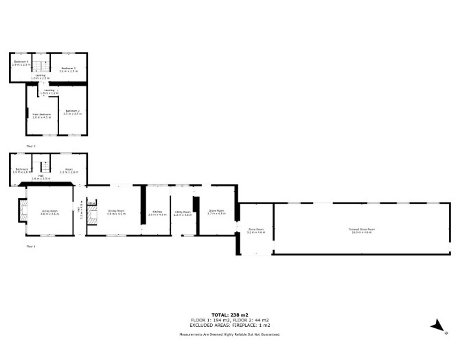 The property comprises a four room detached former farmhouse arranged over ground and first floors with a single storey side extension and outbuildings all situated on a plot of land measuring approximately 5 acres (20,234 sq m).