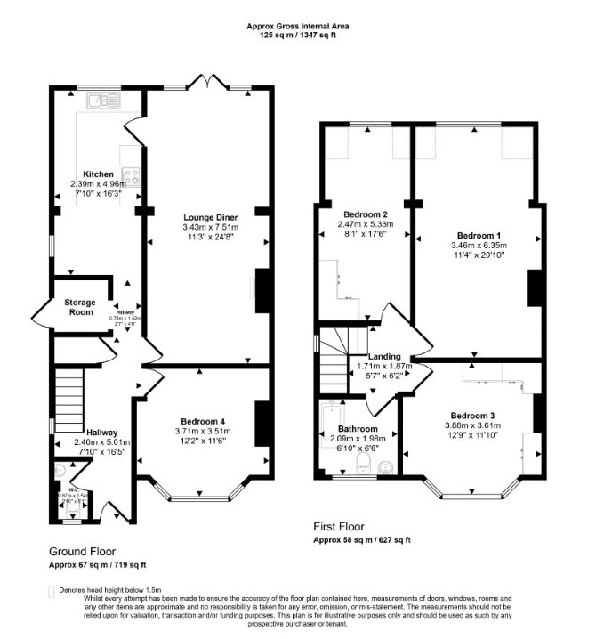 Ground Floor Two Reception Rooms Kitchen WC First Floor Three Bedrooms Bathroom