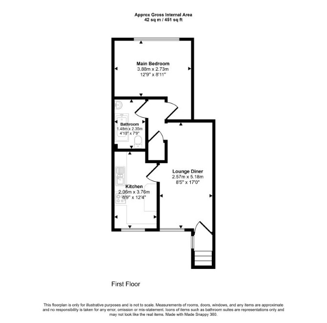 The property comprises a first floor one bedroom maisonette situated within an end of terrace building arranged over ground and first floors.