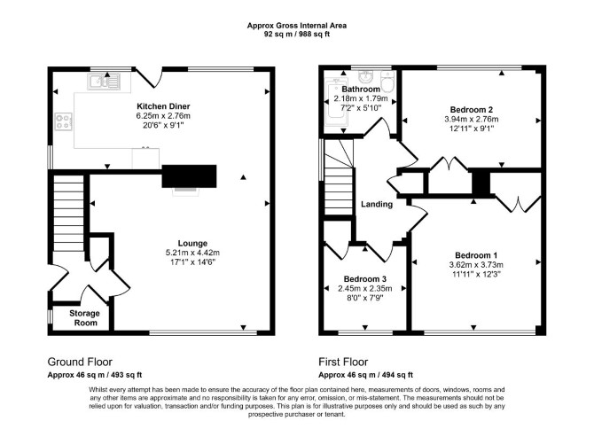Ground Floor Reception Room Kitchen/Diner WC First Floor Three Bedrooms Bathroom