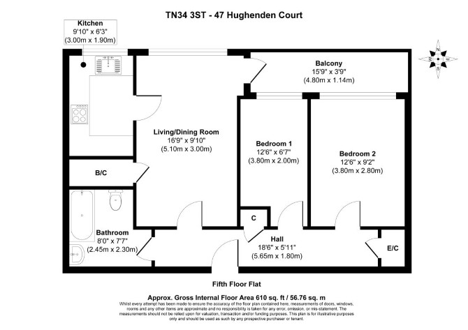 The property comprises a fifth floor two bedroom flat situated within a purpose built block arranged over ground and five upper floors.