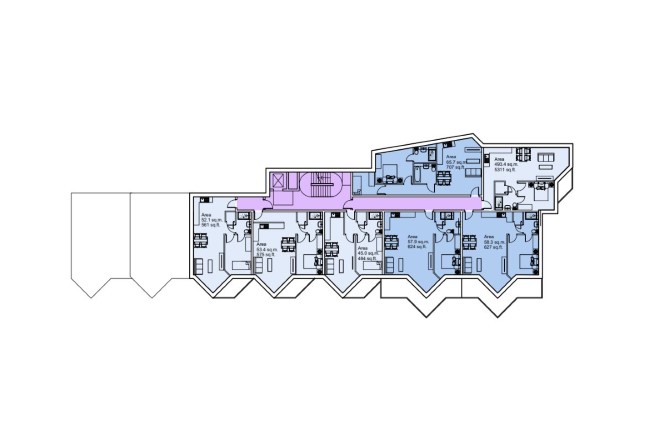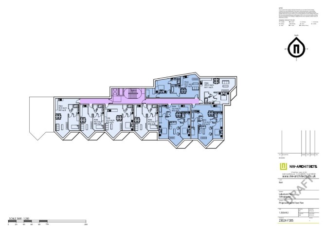 Ground Floor 3 x One Bedroom Flats First Floor 6 x One Bedroom Flats 3 x Two Bedroom Flats Second Floor 6 x One Bedroom Flats 3 x Two Bedroom Flats Third Floor 5 x One Bedroom Flats 3 x Two Bedroom Flats Fourth Floor 5 x One Bedroom Flats 3 x Two Bedroom Flats Sixth Floor 4 x One Bedroom Flats 3 x Two Bedroom Flats