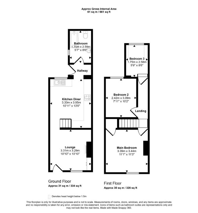 The property comprises a three bedroom mid terrace house arranged over ground and first floors.