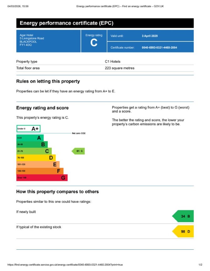 The property comprises a mid terrace ten bedroom hotel with a one bedroom flat arranged over ground and two upper floors.