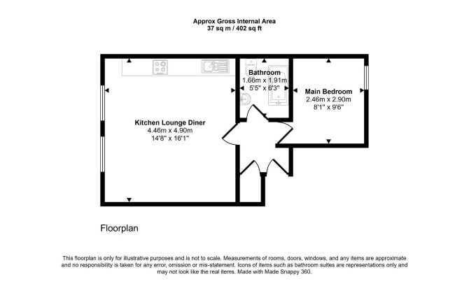 Second Floor Reception Room with Open Plan Kitchen Bedroom Bathroom