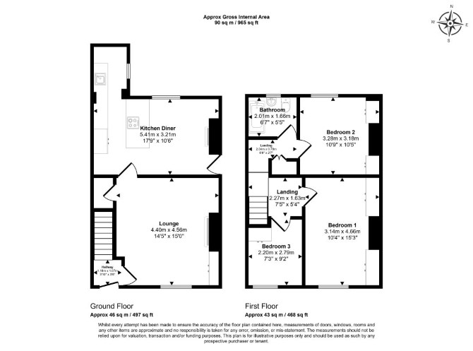 The property comprises a three bedroom end of terrace house arranged over ground and first floors.