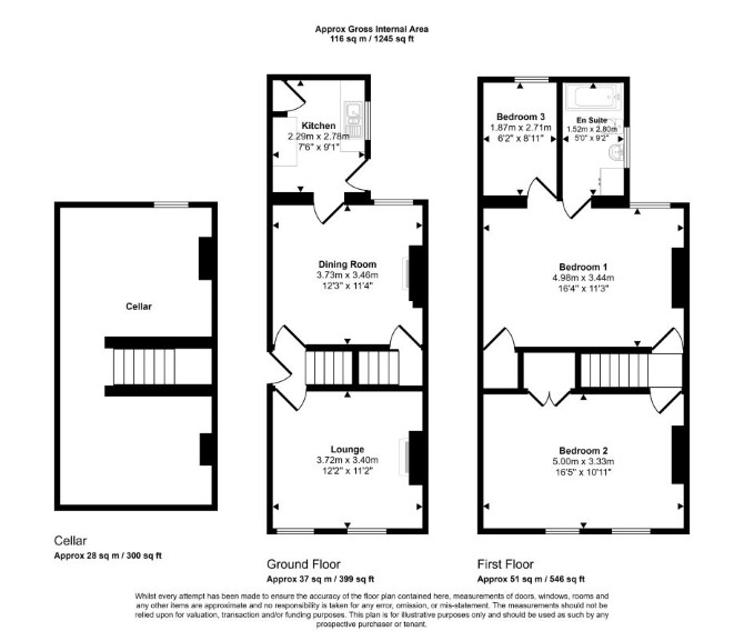 Lower Ground Floor Double basement with restricted head room of 1.7m approximately (not measured) Ground Floor Reception Room Kitchen First Floor Two Bedrooms Third room is off the master bedroom Bathroom