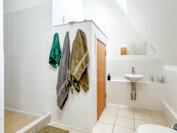 The apartment features an open plan living area and fitted kitchen, bathroom and double bedroom. Upstairs is a generous master bedroom with ensuite, velux windows and high ceilings. Outside is an allocated parking space.