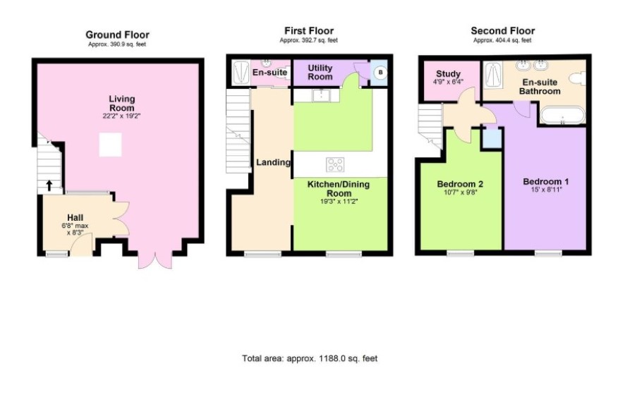 Ground Floor - Entrance: Private front door with glazed panel to the side. Walnut wooden flooring throughout ground floor, picture window to living room, stairs rise to the first floor and double wooden doors lead through in to the lounge. Living Area: Further multi pane double glazed doors lead back out on to the wooden decking of the communal gardens, feature exposed brickwork, two cast iron columns, From reception hallway carpeted stairs rise to the first floor accommodation. First Floor - Bespoke Kitchen: finished to the highest of specifications, with ample wall and base units with Corian moulded work surfaces and moulded sink and drainer together with tiled splashbacks, Dining Room: Walnut flooring, radiator, double glazed window encased in exposed brickwork overlooking the communal gardens. From first floor carpeted staircase rises to the second floor accommodation.. Second Floor - Shower Room: Walk in fully tiled wet area with shower, further WC and hand wash basin. Utility Room: Space and plumbing for washer dryer and further cupboard housing gas boiler. Bedroom One: Large Double Bedroom, carpeted with feature wall of exposed brickwork housing double glazed window overlooking the communal gardens and door to en-suite. Bedroom Two: Carpeted with feature wall of exposed brickwork housing double glazed window overlooking the communal gardens. Walk In Wardrobe: Carpeted room with fitted wardrobes & drawers. Bathroom: Fitted with a white suite incorporating oval bath with side fittings, his and hers sinks on granite plinth with full width vanity mirror, WC, walk in shower cubicle with rain shower and side jets, heated towel rail, tiled to half height.