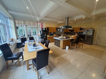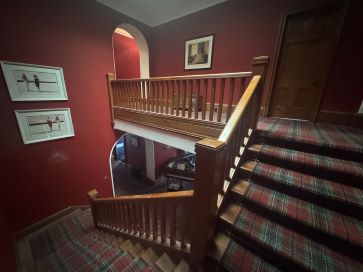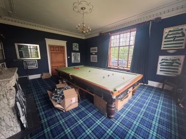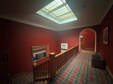 Exciting opportunity to acquire Kinnell House, an elegant arts and crafts mansion house built in 1888, located in the picturesque village of Howwood, ten miles from Glasgow Airport. The property is keenly priced, with almost 25% reduction on the home report based on the Guide Price. This stunning home sits in approximately three acres of mature garden grounds, which incorporate a walled garden and a wildlife pond with fishing rights. The ground floor accommodation comprises an entrance porch, grand reception hall with arch and dining area with fireplace, billiards room, stunning formal lounge, study, large open kitchen/dining area open plan to family room, conservatory, two utility areas and two WCs. A timber staircase leads to the upper floor, which comprises a shower room and seven bedrooms – master with en suite and dressing area, bedroom two with en suite. Stairs from the landing lead to the second floor/attic level, which comprises two bedrooms, a shower room and three storage rooms. When the roof was replaced, three bedrooms on the second floor/attic level had the dormer windows removed and are utilised as storage spaces now. This charming house has a wealth of period features including wood panelling, ornate cornicing, beautiful marble fireplaces, and there is a terrific balcony at the front overlooking the garden with views to Glasgow. The property has approximately three acres of mature gardens, incorporating a tree lined driveway, a walled garden, and a wildlife pond with overflow leading to further, ornate pond. There is a triple garage, summer house, boiler house, and outhouses including a workshop and store. Council Tax Band: E.