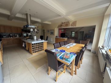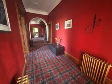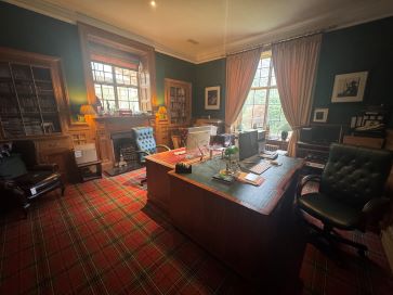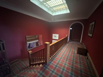 Exciting opportunity to acquire Kinnell House, an elegant arts and crafts mansion house built in 1888, located in the picturesque village of Howwood, ten miles from Glasgow Airport. The property is keenly priced, with almost 25% reduction on the home report based on the Guide Price. This stunning home sits in approximately three acres of mature garden grounds, which incorporate a walled garden and a wildlife pond with fishing rights. The ground floor accommodation comprises an entrance porch, grand reception hall with arch and dining area with fireplace, billiards room, stunning formal lounge, study, large open kitchen/dining area open plan to family room, conservatory, two utility areas and two WCs. A timber staircase leads to the upper floor, which comprises a shower room and seven bedrooms – master with en suite and dressing area, bedroom two with en suite. Stairs from the landing lead to the second floor/attic level, which comprises two bedrooms, a shower room and three storage rooms. When the roof was replaced, three bedrooms on the second floor/attic level had the dormer windows removed and are utilised as storage spaces now. This charming house has a wealth of period features including wood panelling, ornate cornicing, beautiful marble fireplaces, and there is a terrific balcony at the front overlooking the garden with views to Glasgow. The property has approximately three acres of mature gardens, incorporating a tree lined driveway, a walled garden, and a wildlife pond with overflow leading to further, ornate pond. There is a triple garage, summer house, boiler house, and outhouses including a workshop and store. Council Tax Band: E.