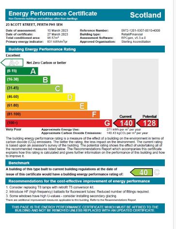 Scott Street enjoys ideal central Perth location with good levels of footfall. Perth has an excellent choice of shops, bars and restaurants as well as a concert hall, theatre, art gallery, museum and cinema. The town’s leisure facilities also include the Perth Climbing Centre, The Willowgate Activity Centre, Perth Leisure pool, an ice rink and two sports centres. Local golf courses include the North Inch Golf Course (one of the oldest in Scotland), James VI Golf Course on Moncrieff Island (a short walk away), Craigie Hill and Murrayshall. The world famous golf courses at Gleneagles and St Andrews are both within 35 miles. There is National Hunt racing at Scone Palace, which also hosts The Scottish Game Fair.