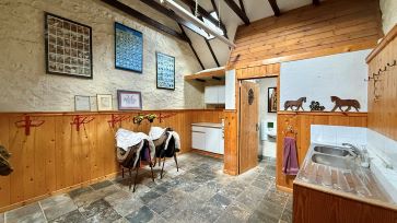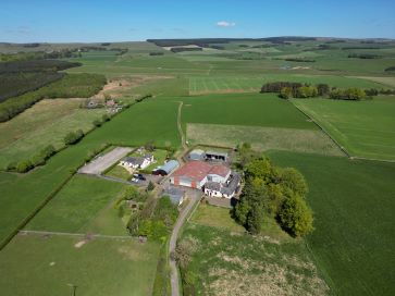 Situated in a peaceful rural setting in the scenic Scottish Borders. Extending to approximately 5.7 acres, the property comprises a main farmhouse, a fully modernised self-contained annexe, a large barn with stables and an indoor exercise area, two paddocks, a workshop, carport, outbuildings, and extensive gardens. The main farmhouse is a detached three-bedroom house comprising a lounge, sitting room, office, and a generous family kitchen featuring an AGA. Sunroom with spectacular views across the garden. There is also a utility room, boot room, and workshop. Upstairs, there are two double bedrooms, a spiral staircase from the lounge leads to additional bedroom/office space. The farmhouse requires a degree of upgrading throughout. The former granary is a detached annexe, fully modernised to a high specification while retaining some original features and comprises lounge/kitchen/dining room with a Rayburn, underfloor heating, and a downstairs WC. Upstairs, there is a spacious double bedroom and en-suite shower room. The Granary is completely self-contained with its own parking space. The standalone building is located adjacent to the farmhouse and has been divided into three practical sections, providing excellent equestrian facilities. It includes three loose boxes and a dedicated feed/storage area, ensuring a well-organised and functional space for daily horse care and management. The indoor silica sand arena offers a high-quality, all-weather riding surface for year-round use. In addition, the barn benefits from four access points, allowing horseboxes or large vehicles to conveniently drive through and exit on the opposite side to the rear yard. The farmhouse benefits from an abundance of outdoor space, including well-maintained gardens with raised flowerbeds and mature trees, two large paddocks extending to approximately 2.2 acres each. Ample parking, serves the farmhouse and rear courtyard, along with an open-fronted carport and a lockable garage/storage barn. A timber shed is located to the north of the farmhouse, currently housing chickens, with a practical potting shed nearby.