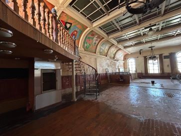 Entrance Double Arched Doors lead into the internal vestibule, side room to the right, ideal for counter or similar, staircase leads up into the property's accommodation. Ground Floor Area Approximately 2000 Sq Feet and comprising of a large single area, hallway, male and female WC rooms, kitchen area with the majority of the infrastructure in place. Main Floor Area In excess of 2200 Sq Ft and 16 feet from floor to ceiling, this area offers massive scope for development. Comprising large windows to the front aspect, a bar area and a fabulous coloured panel glass part ceiling for lighting purposes, staircase leads up to an extra mezzanine level. Mezzanine Level Spiral staircase ascending to Mezzanine level with timber door leading out to decked roof terrace.