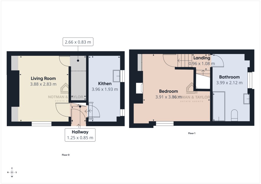 GROUND FLOOR Hallway Living Room - 3'88m x 2'83m Kitchen - 3'96m x 1'93m FIRST FLOOR Master Bedroom - 3'91m x 3'86m Bathroom - 3'99m x 2'12m