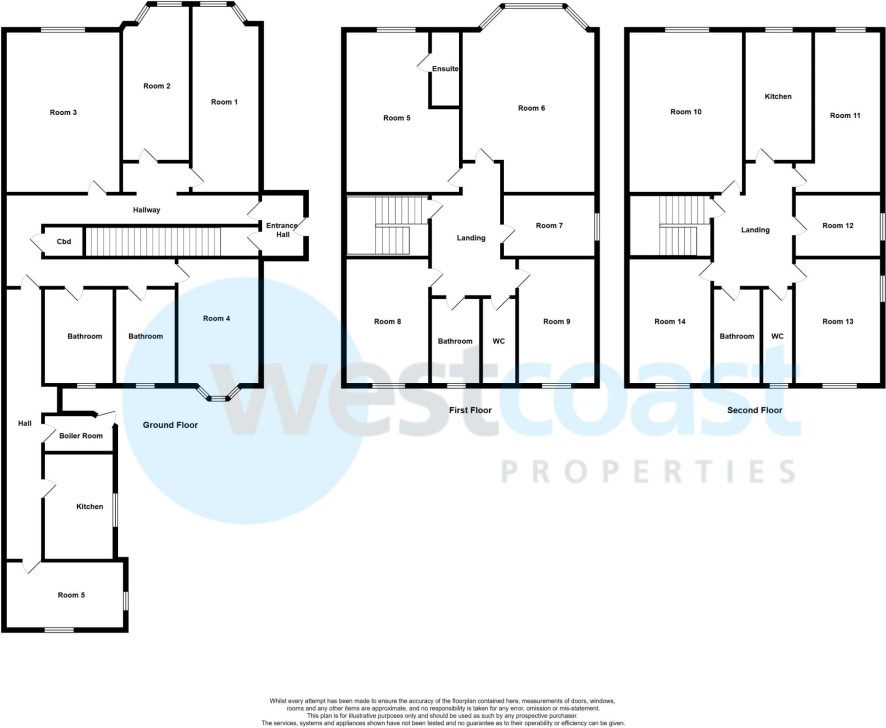 Ground floor Bedroom 1 Bedroom 2 Bedroom 3 Bedroom 4 Bedroom 5 Kitchen Boiler Room Bathroom Bathroom First Floor Bedroom 6 and En Suite Bedroom 7 Bedroom 8 Bedroom 9 Bedroom 10 Bathroom WC Second Floor Bedroom 11 Bedroom 12 Bedroom 13 Bedroom 14 Bedroom 15 Bathroom WC