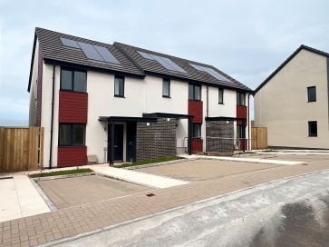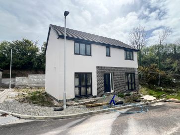 A partially finished development site consisting of 13 new build residential properties, all of differing sizes and stages of completion, located in Tamerton Foliot, Plymouth.