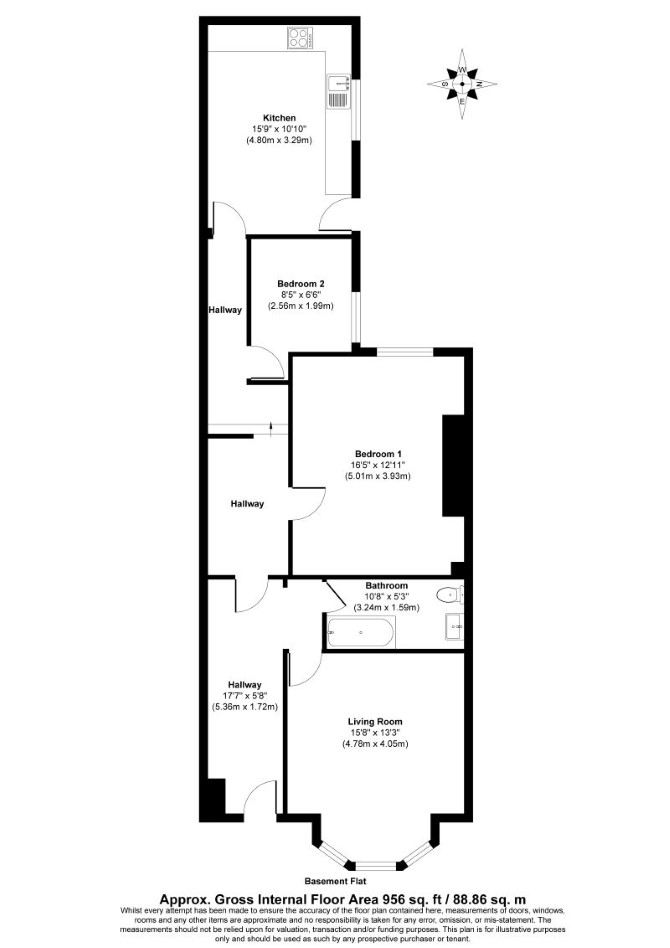 Leasehold lower ground floor flat, within a period conversion comprising; living room, kitchen, 2 bedrooms and a bathroom.