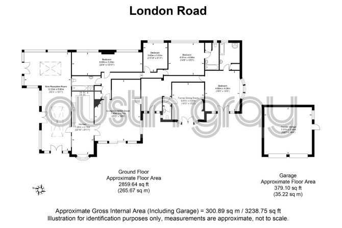 Freehold detached bungalow comprising, entrance hall, living/reception room, formal dining room, kitchen, side reception room, 4 x bedrooms, 3 x bathrooms. There is double garage. Buyers should check the Title plan (WSX282273) to show the exact extent of the grounds as land to the east side of the property ( ie right as you look at the property ) is not included in the sale. ie the area with the swimming pool and adjacent outbuildings are not included in the Title being sold.