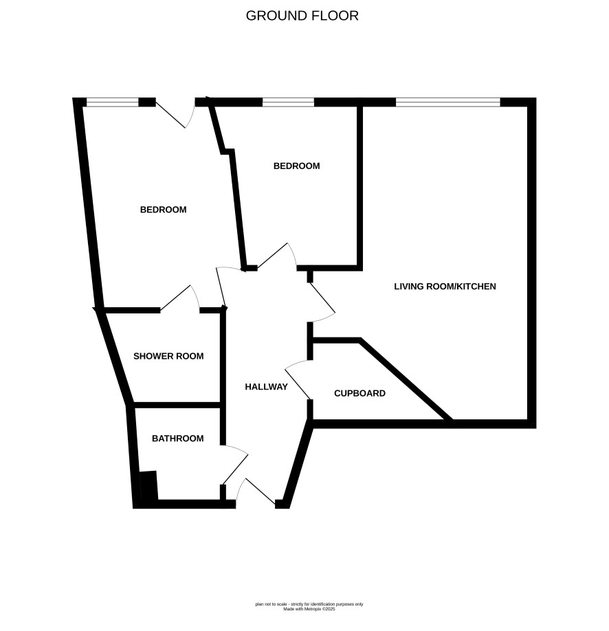 Living room/kitchen, two bedrooms, bathroom and shower room.