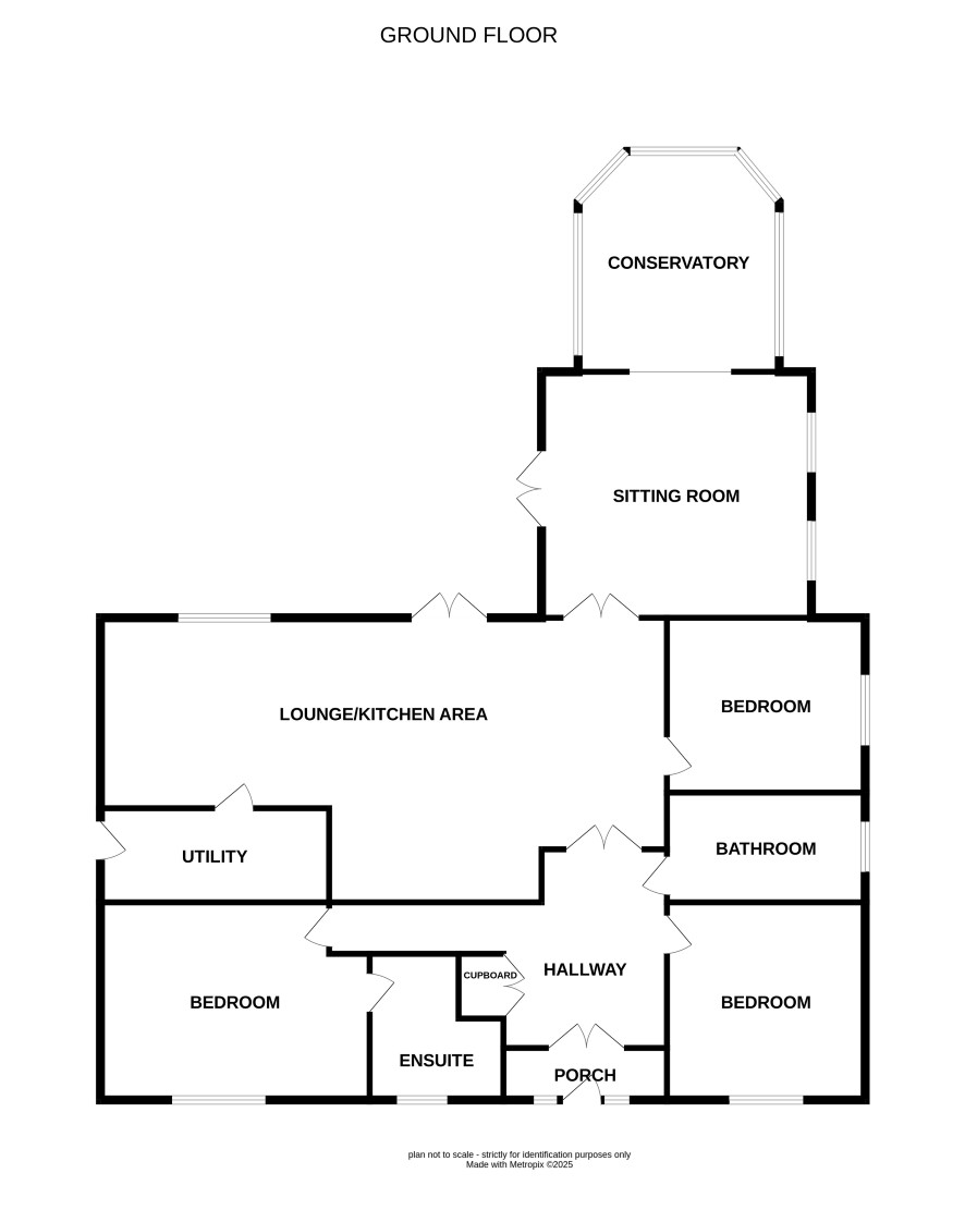 Lounge/kitchen area, sitting room, utility room, conservatory, three bedrooms (one with en-suite) and a bathroom.
