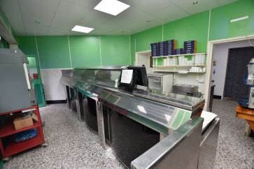 Fish and chip shop, preparation area, kitchen and WC