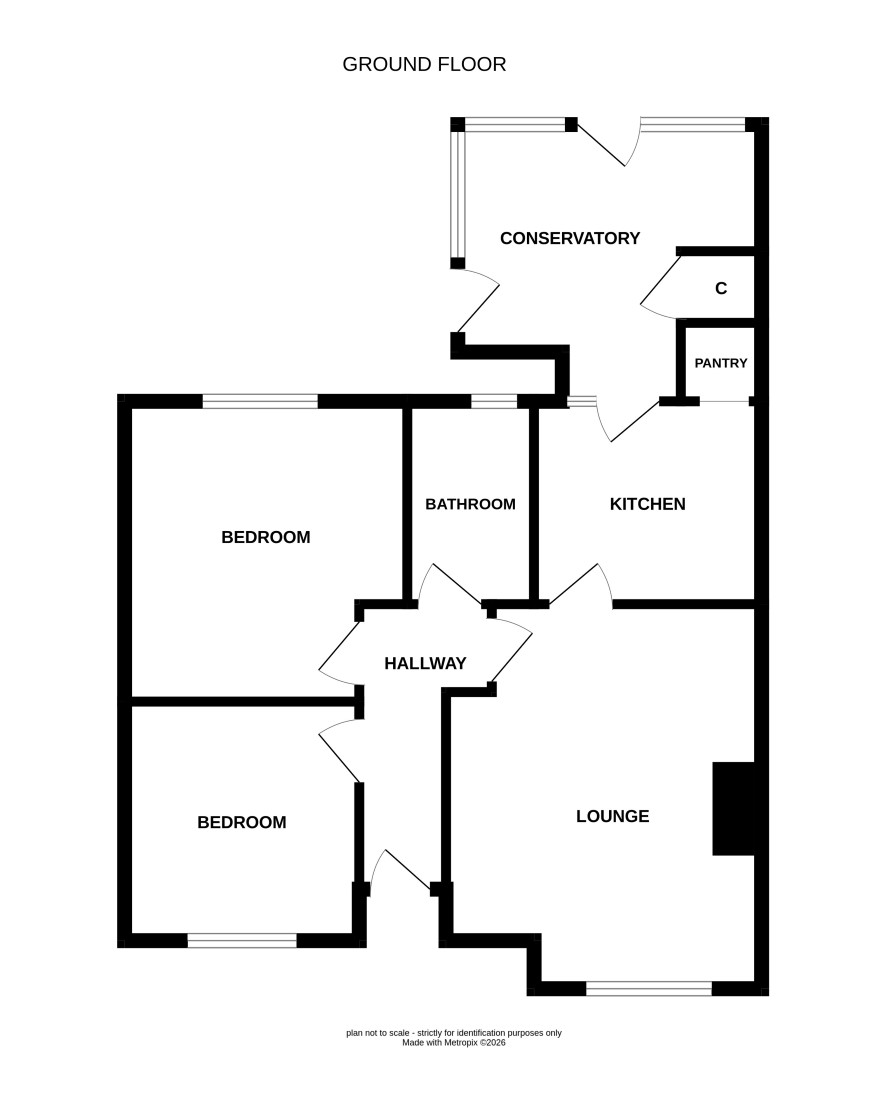 Lounge, kitchen, conservatory, two bedrooms and a bathroom